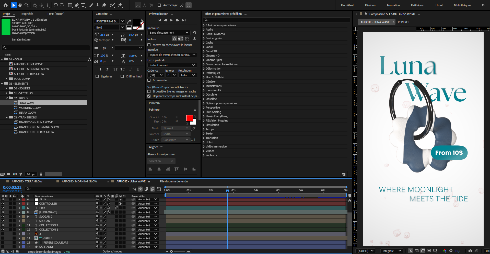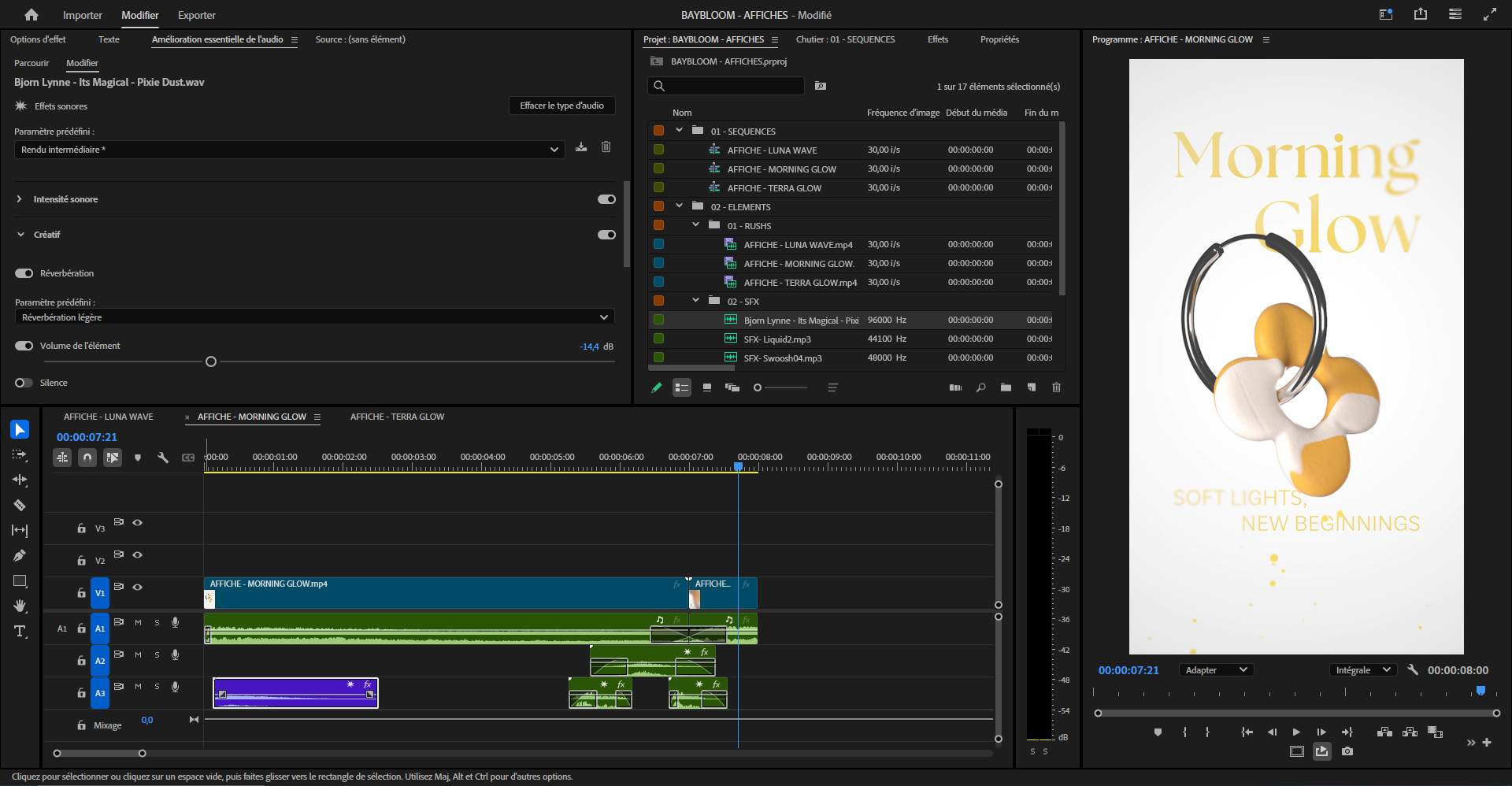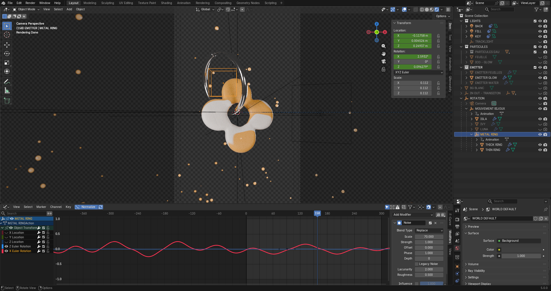 BAYBLOOM Type : Projet 3D & 2D Durée : 3 jours Logiciels utilisés : Blender, Adobe After Effects, Premiere Pro Création de 3 reels promotionels pour la marque Baybloom. Ils promotent les 3 première collections de boucles d'oreilles de la marque.